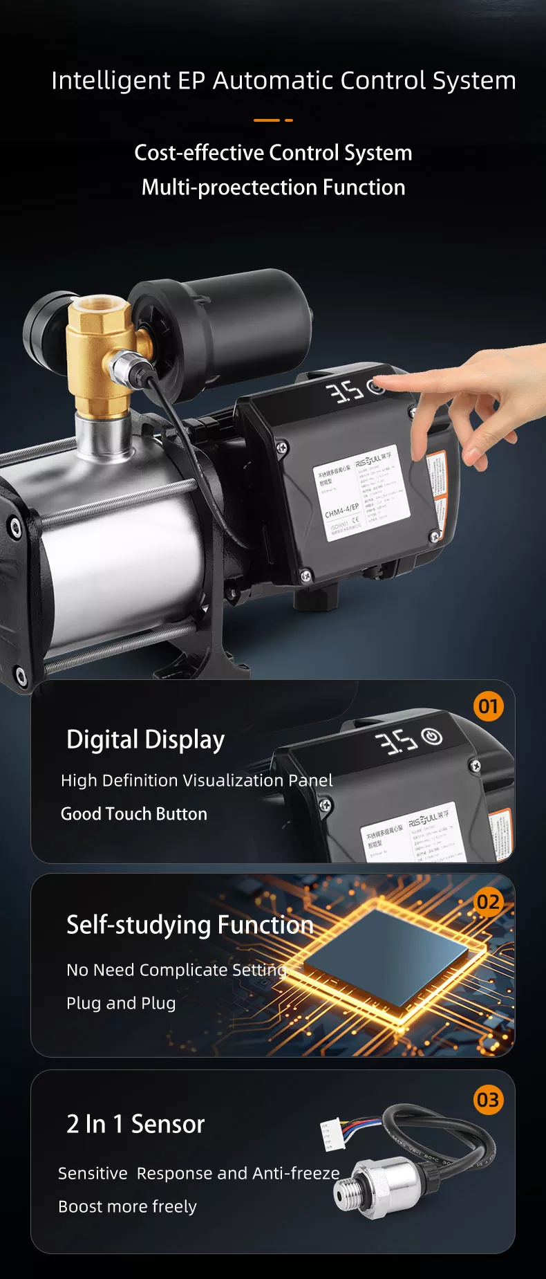 3. Motor dengan penutup hujan boleh diletakkan secara langsung di luar rumah untuk digunakan tanpa membina bilik pam, yang sangat menjimatkan pelaburan infrastruktur.