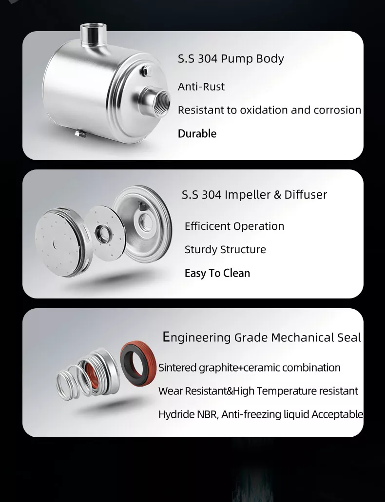 3. Aplikasi serba boleh: Sama ada anda perlu meningkatkan tekanan air di bangunan, sistem pengairan, atau proses perindustrian, pam ini cukup serba boleh untuk memenuhi pelbagai keperluan dengan mudah.